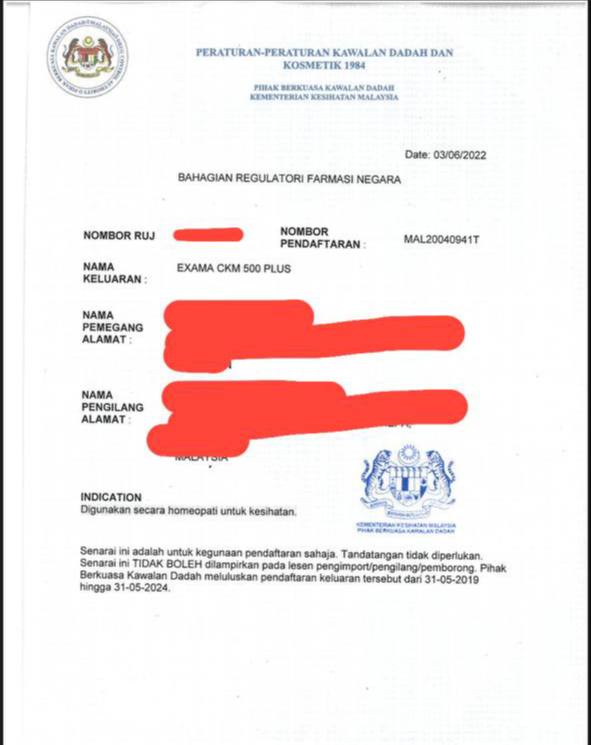 Mana-mana produk kesihatan yang ingin dipasarkan di Malaysia, hendaklah melalui 2 proses pengesahan dari badan berwajib, iaitu Kementerian Kesihatan Malaysia (KKM) dan Jabatan Kemajuan Islam Malaysia (JAKIM).